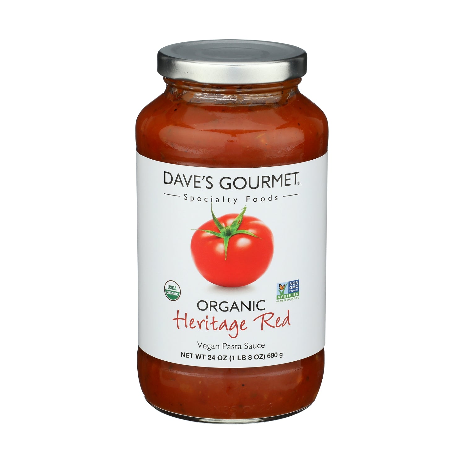 Dave's Gourmet Heritage Red Pasta Sauce is made with organic sweet vine-ripened tomatoes, premium garlic, extra virgin olive oil, and fresh herbs. This tomato sauce is a delicious combination that is light, fresh, and bursting with flavor.