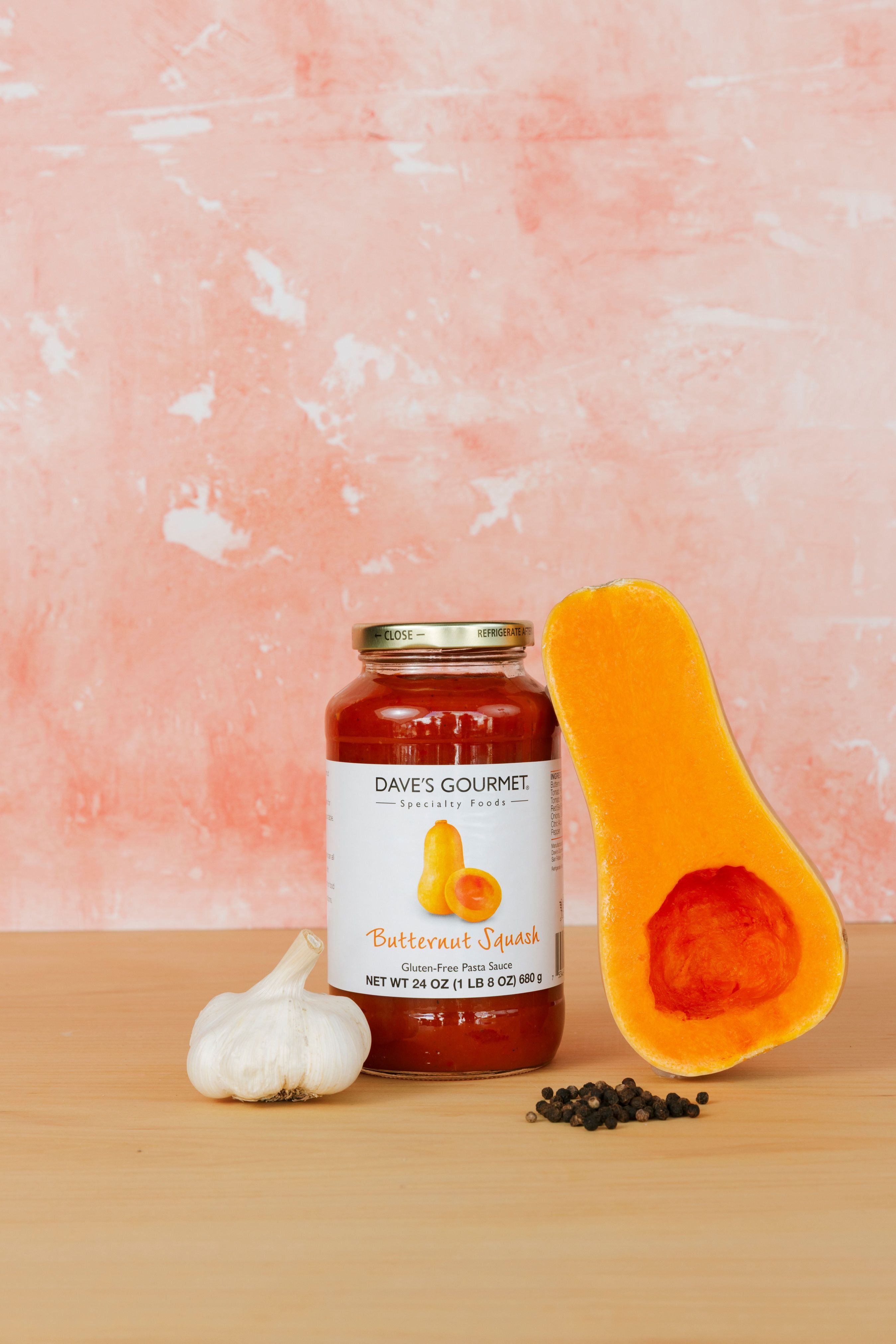 Dave's Gourmet Butternut Pasta Sauce is a Gold Medal Winner for "Best Pasta Sauce"! Our naturally wholesome butternut sauce is made from squash ripened in Oregon's Willamette Valley. It is enhanced with fresh garlic, onions, and roasted red peppers for a hearty and delicious flavor.