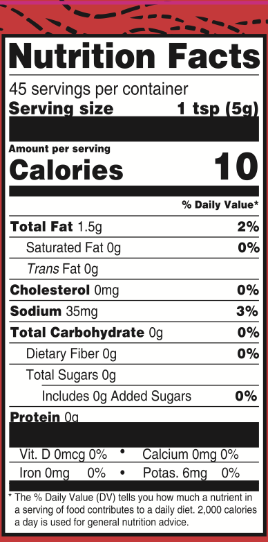 Ingredients: Water, Canola Oil, Red Bell Pepper, Red Jalapeño Pepper, Tomato Paste, Sea Salt, White Distilled Vinegar, Garlic, Cumin.