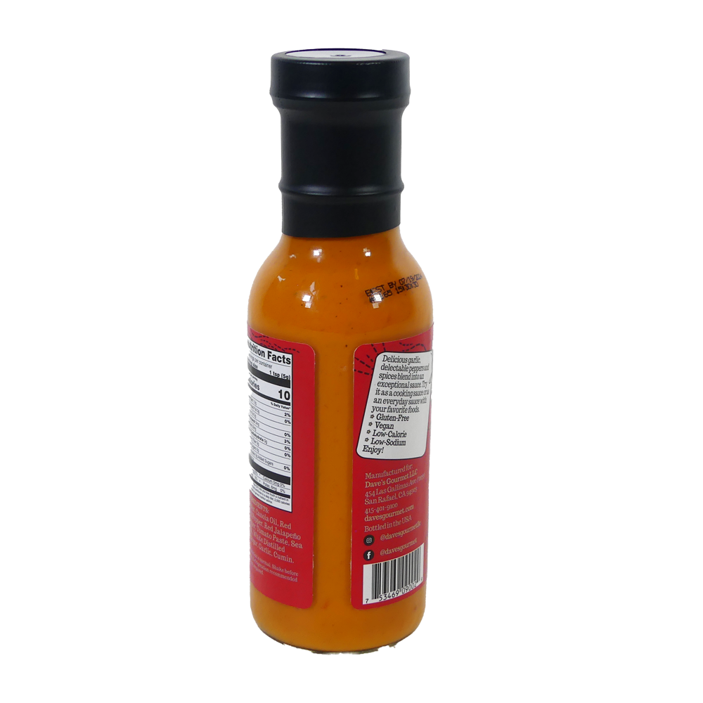 Dave's Gourmet Creamy Garlic Red Pepper Sauce is a blend of spicy red chilies, sweet roasted peppers, garlic, and spices. Try a spoonful and savor the creamy sweetness of roasted red peppers followed by the zip of red chilies. This sauce is moderately spicy so you don’t have to be a hot sauce lover to enjoy it.