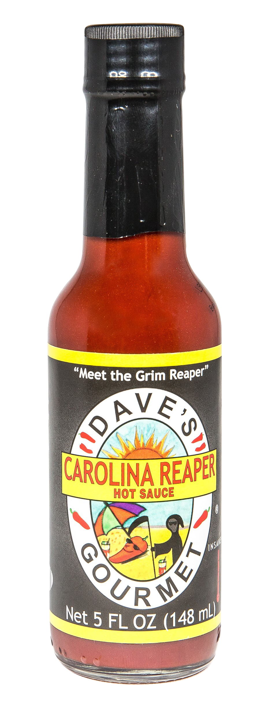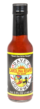 Dave's Gourmet Carolina Reaper Hot Sauce is made with the chile that is widely known as one of the hottest. This is an extremely spicy sauce with a killer flavor. Adding a very small amount to most dishes will send blandness to its grave. Use one drop at a time! Heat Level: INSANELY HOT + + No Preservatives No Artificial Colors or Flavors Low Fat/Sodium • Gluten Free
