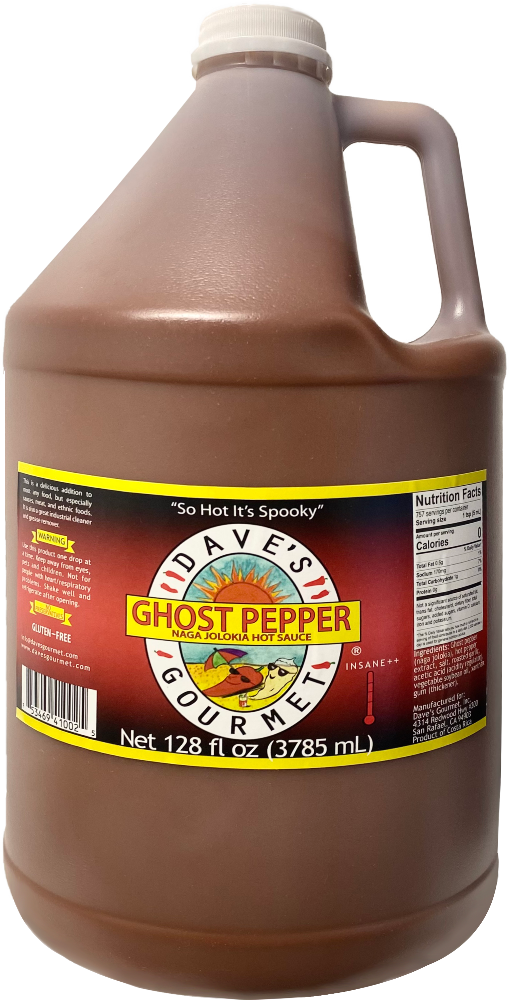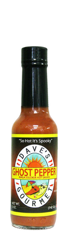Dave's Gourmet Ghost Pepper Jolokia Sauce is so hot it’s spooky! This sauce haunts palates with its slightly fruity and savory hot chili pepper flavor. Possessing a deceptive heat that slowly creeps up on you and won’t let go. It makes a grave addition to stews, wings, potato salad, or any other food that could use some frightful spice one drop at a time!