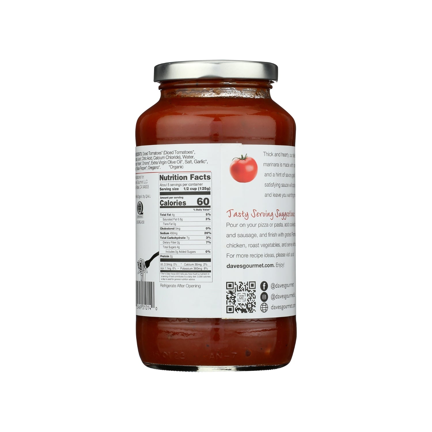 Dave's Gourmet Organic Hearty Marinara is a thick, delicious sauce made with tomatoes, olive oil, and a hint of savory garlic. This satisfying sauce will coat your pasta and leave you wanting more.