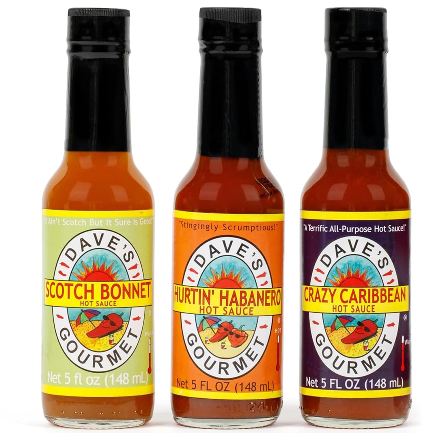 Dave's Gourmet Habanero Sauce is a palate-pleasing blend of habanero, onion, garlic, and spices. Dave’s AWARD-WINNING Habanero Sauce is a delicious alternative to his usually insanely hot sauces. Boosts any dish with a balance of flavor and moderate fire that Chiliheads of all ages can enjoy.