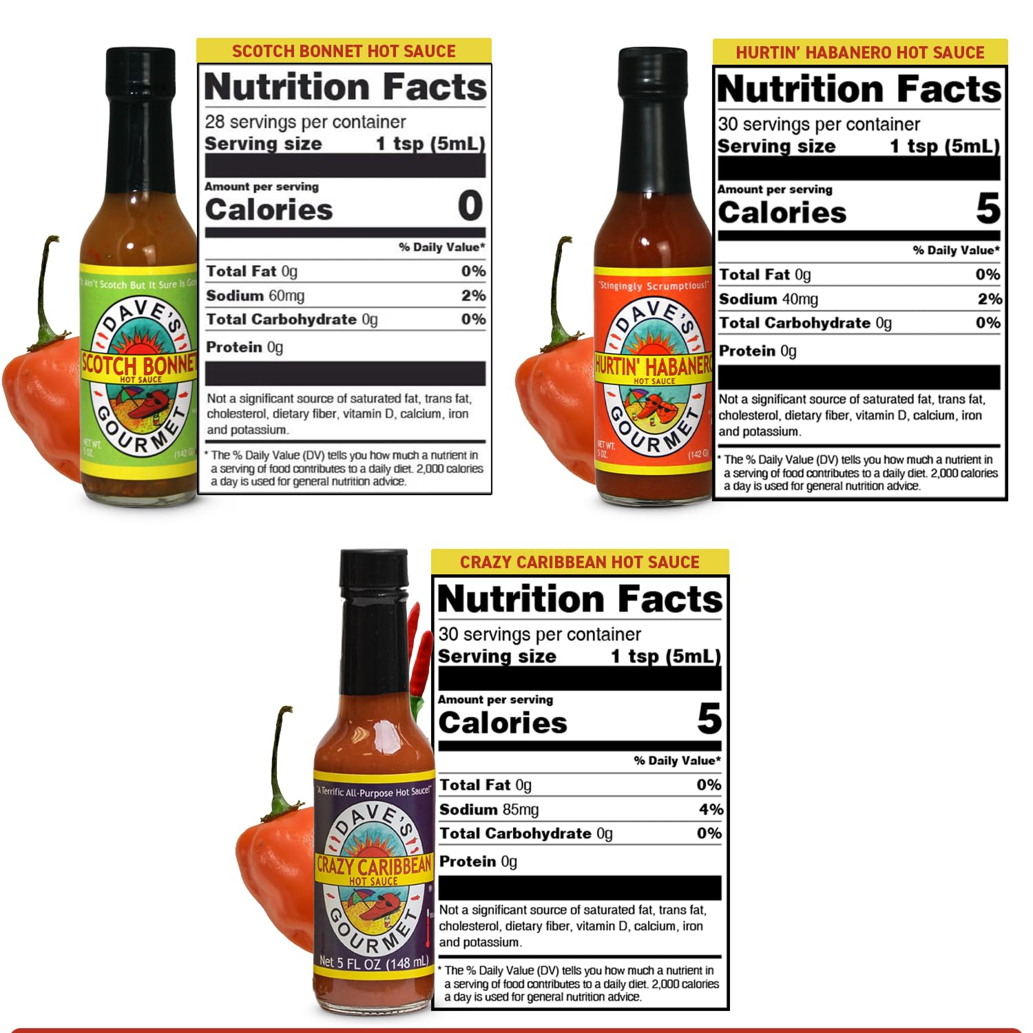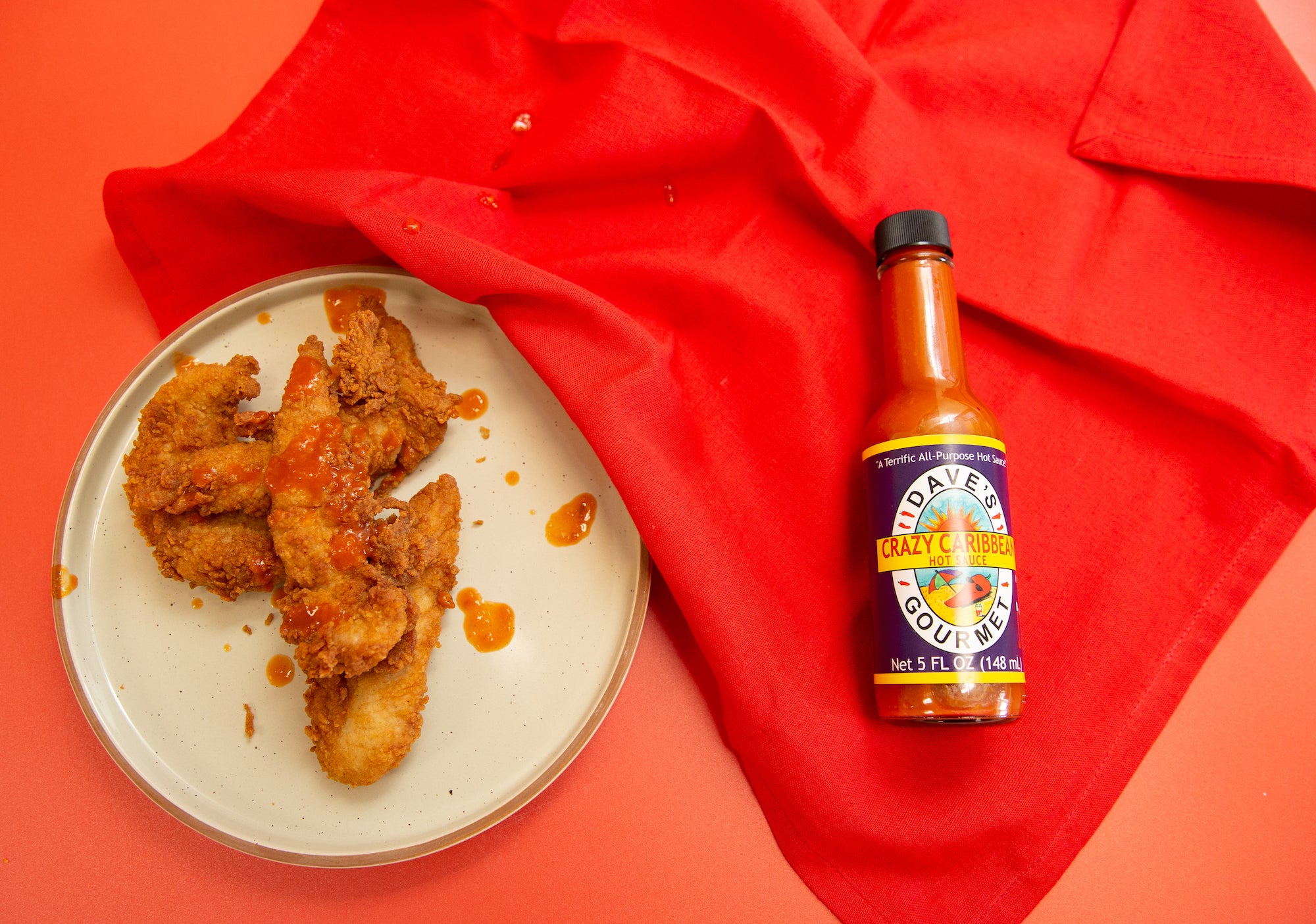 Dave's Gourmet Crazy Caribbean Hot Sauce is a blend of Caribbean red peppers, fresh lime juice, and garlic. This hot sauce is a bright and peppery-hot complement to seafood dishes and fried foods alike. Make wings and fried calamari with a refreshing Caribbean zing!